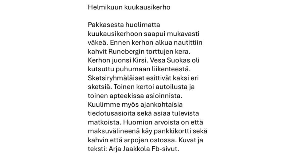 Helmikuun kuukausikerho