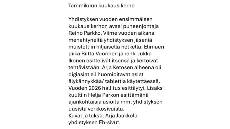 Tammikuun kuukausikerho